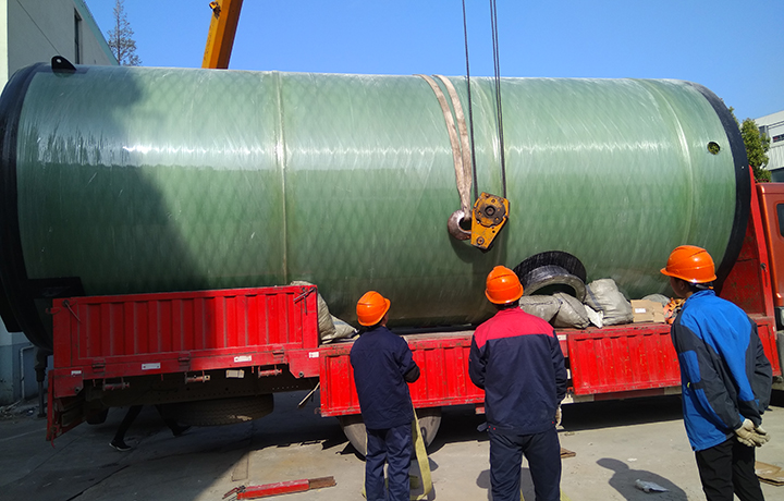 一体化预制泵站由顶盖、玻璃钢(GRP)筒体、底座、潜水泵、服务平台、管道等部分组成,以满足增压提升排水要求的设备。可实现无人值守泵站。由于玻璃钢密度轻,使用寿命长、占地面积小等特点而被应用到各个领域。