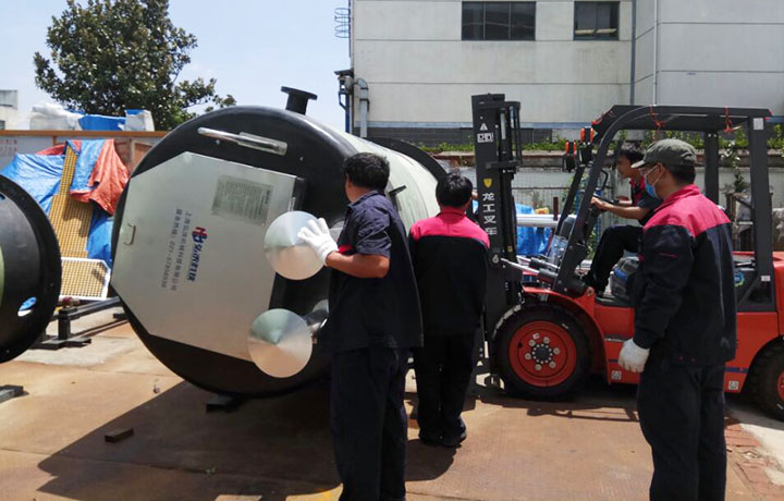 大家心往一处想力往一处使,仅使用了20多分钟就把宝山项目的这一泵站与配套设施装车完毕,装车完毕后,井然有序的对泵站再次进行检查。此次宝山项目其实是有三台泵站的,按照客户要求先发一台过去。