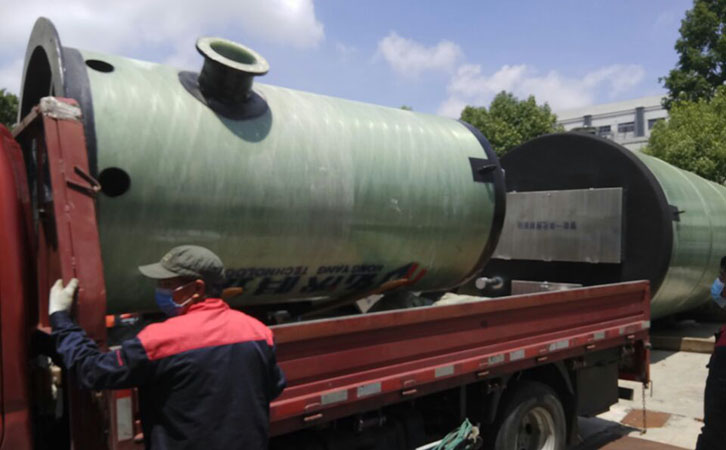 预制泵站筒体结构由新型材质纤维玻璃钢(GRP)制成,电脑控制连续缠绕一次.性成型,确保厚度均匀并达到设计要求,具有坚固、耐腐、耐用等特点。
