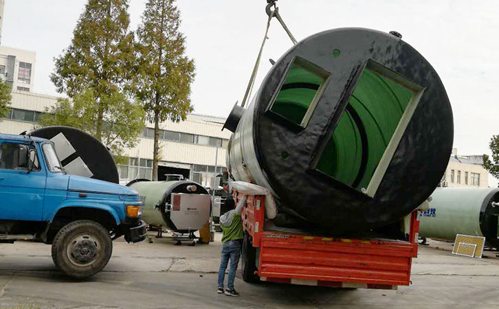 一体化玻璃钢泵站,因为提前预制安装,出厂后可以直接在现场施工,减少了项目地点的等待和对于环境的影响。