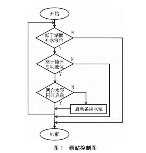 系统调试期间,利用人机操作程序的触摸屏,准确获取补水液位参数、简体运行的初始液位等参数。系统运行期间,PLC能够持续监测简体、补水湖面各个位置的液位参数,由传感器进行信息反馈,与初期设定参数进行对比。当水位参数不大于湖面、水位高于简体初始液位时,同时运行两组水泵。如果一组水泵存在质量问题,需暂停水泵,运行备用水泵。当补水液位高于初期设计参数,此时,水泵暂停运行时,需重新进行信息监测。(3)远程控制。人机操作单元是泵站远程监控的关键,能够监测泵站的运行状况、反馈泵站运行状态,显示泵站操作人员,动态呈现水泵程序的重要参数变动过程,便于巡检人员实时获取水泵运行情况。模块开发后,表现出功能完整、操作便捷、可视性优势、运维便捷等优势。利用CPU程序,使用驱动程序补充系统所需的通讯协议,组建成联动通讯程序。结合系统真实运行情况,有效掌握控制程序的设备运行状况,准确设计设备各项参数,创建数据变量,给出人机操作程序,确保动态监控的全面性。控制程序中添加了各组泵站的控制按钮,比如,启停键、功能切换键等。远程操作程序,可使用控制箱自主控制各类系统信号。一体式泵站内置的控制程序,设有通信接口,能够利用交换设备进行信息传输,将信息传送空旷无人、网络覆盖不全的位置。