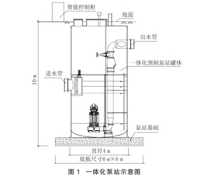 东宝区南片区污水处理厂现状规模1.25 万 t/d规划规模5万 t/d。由于东宝区工业园及长宁新城开发,现状污水厂处理能力已不能满足污水排放需求王林港截污管内污水在王林港上游出现溢流现象对王林港水质影响较大。经过多次踏勘现场,最终确定在王林港桥东北侧设抽排泵站,污水经压力罐抽排至2.5km外的夏家湾污水处理厂。王林港泵站规模3 万 t/d,选用一体化预制泵站,筒体直径 3.8m,简高9 m,筒体材质为高强度玻璃钢(GRP),筒体底部设0.5 m厚钢筋混凝土基础,基础尺寸为6mx6m,如图1所示。泵站基坑底设计高程为50.6m,场地内现状地面高程及场平高程均为 60.6m,泵站基坑深 10 m,平面呈正方形,如图1所示