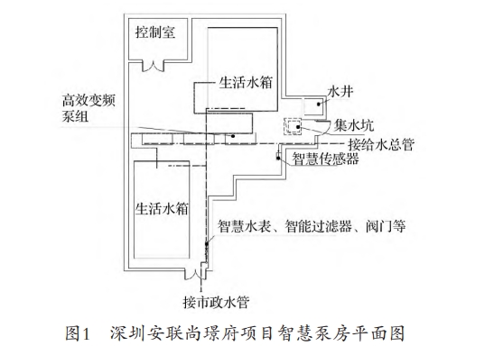 二次供水188体育平台比分直播 通过对用户的感知、智能识别、供电保障、人机互动、水质保障、能耗管理降噪减震等数据,实现视频实时采集、存储、传输、处理等功能。188体育平台比分直播 由供水设施、控制系统和相应的管理系统组成。深圳安联尚璟府项目188体育平台比分直播 平面图如图1所示,