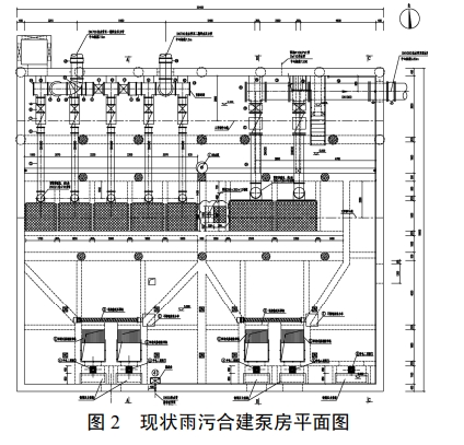 现状雨污合建泵房并无土建扩容的可能,受土建尺寸的限制,经反复设备选型、计算和土建尺寸复核,拟将原泵房内2台规格为0.5m'/s雨水泵更换为 1.0m'/s,同时新增1台1.0m'/s雨水泵,使雨水泵房的提升能力由原 1.0m'/s 增加到 3.0 m/s.