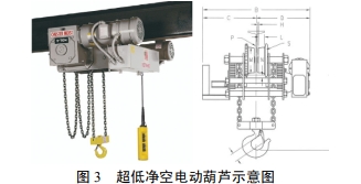 本工程受泵站内空间限制,选用普通电动葫芦难以满足安装要求,需选用超低净空电动葫芦,